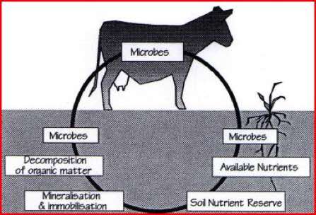 Conventional agriculture thinks of nutrition in chemical terms - NFK. Put plant nutrition relies on the biological activity of microbes - something which has been seriously overlooked. Microbes play a central role in the decomposition and recycling of energy and nutrients held within organic matter. Microbes convert complex biological materials into simple units, which are then used to fuel the metabolism of plants and animals.
